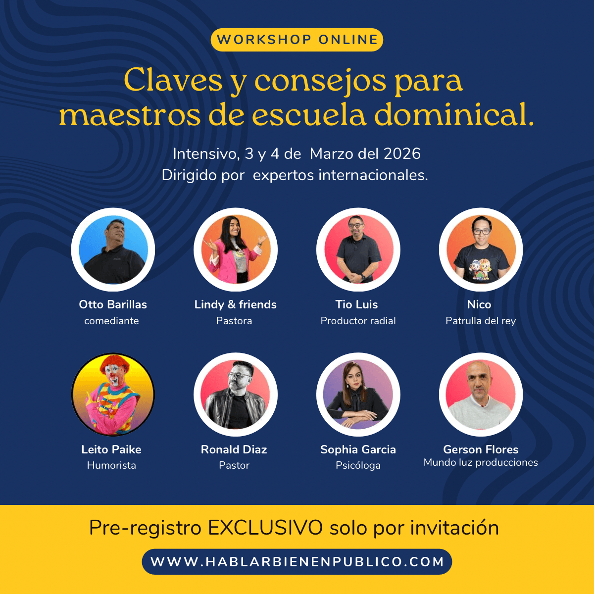 Pastor, comediante, actor y coach de oratoria con más de 30 años de experiencia. Fundador de El Búnker, Arise Studios y múltiples proyectos de formación y evangelismo. Su estilo une humor, palabra y creatividad al servicio del Reino.